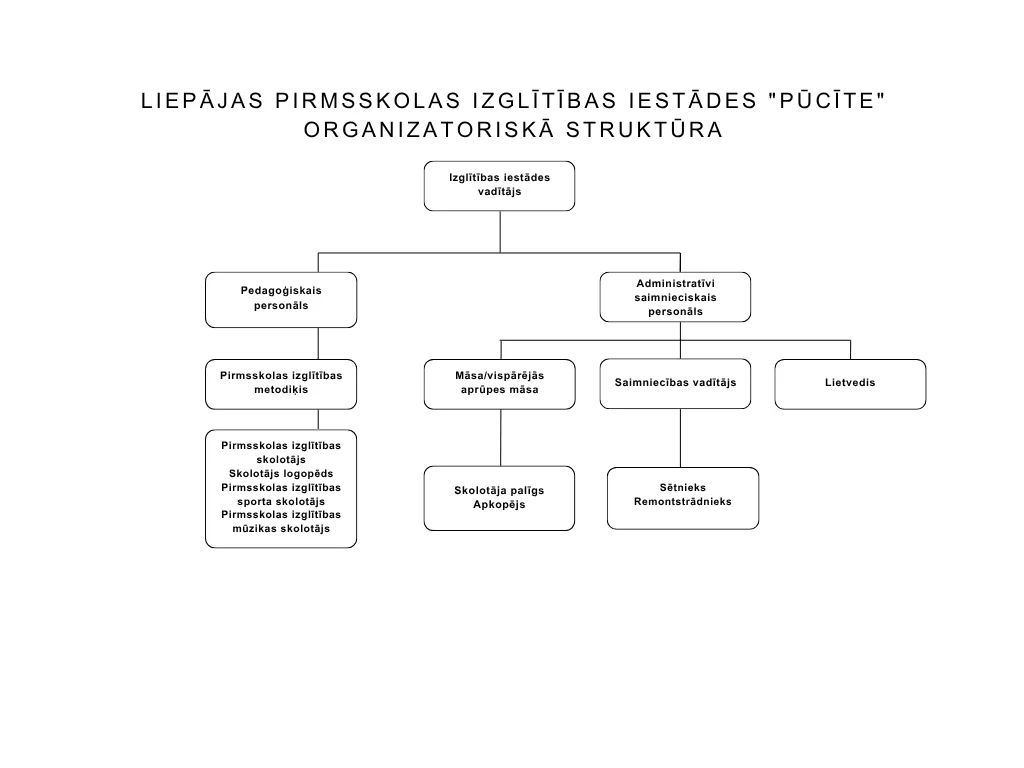Par bērniem ikdienā rūpējas 30 darbinieki, tostarp 15 pedagogi. Katrā vecumgrupā ar bērniem strādā 2 skolotājas un auklīte.